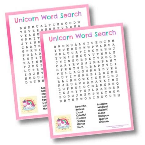 Unicorn Word Search - WordMint