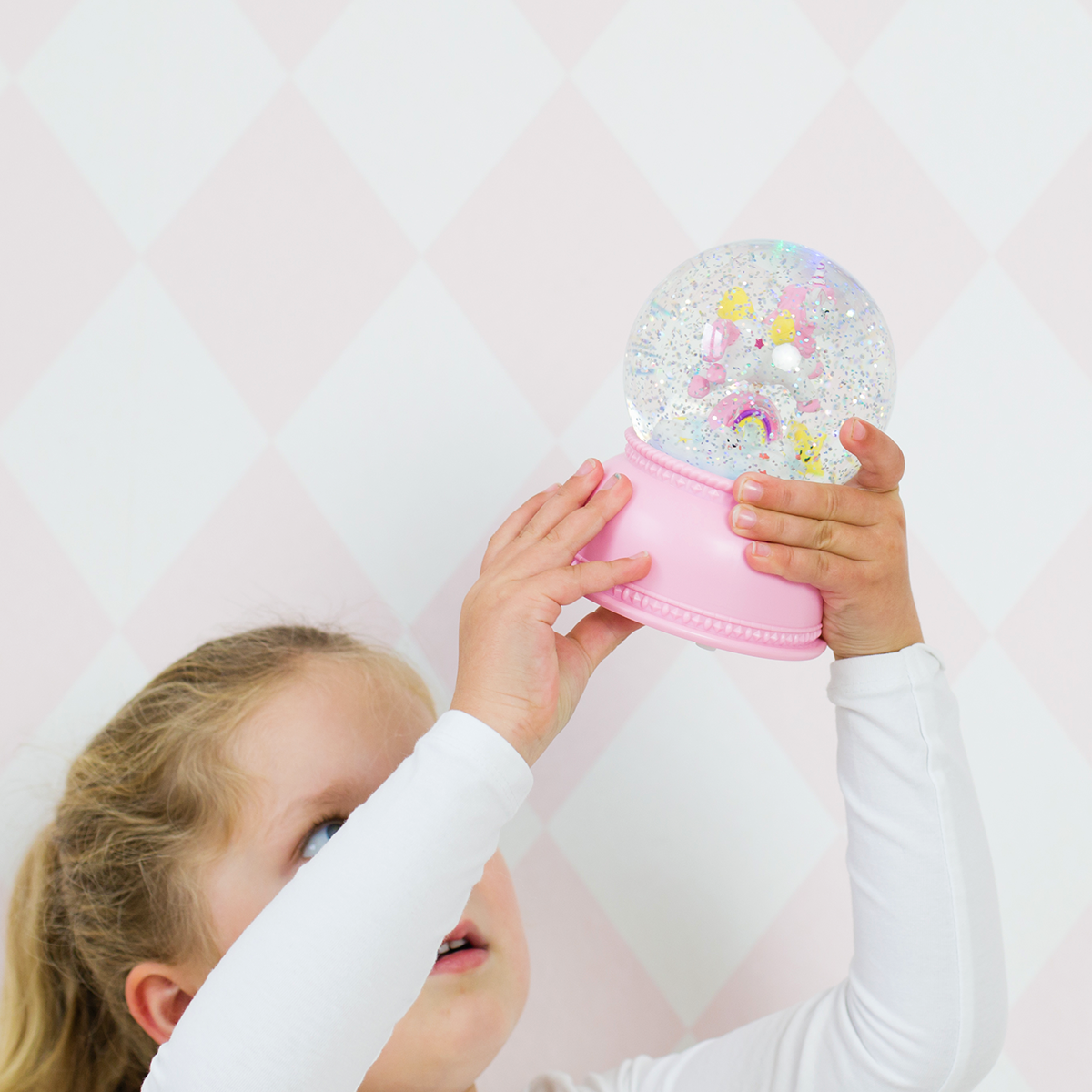 Shake up a magical snowy storm with this beautiful unicorn light up snow globe!